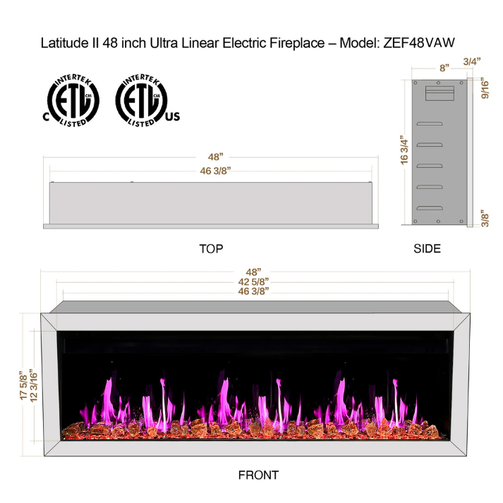 Litedeer Gloria 48 inch Ultra Linear Electric Fireplace with Smart Fireplace App, Life-like Real Flame, 5 Unique Flame Colors, Reflective Amber Glass Ember Bed, Driftwood Log Set and Remote Control Included. Linear Electric Firebox easy Flush Mounted Electric Fireplace in wall or Recess Mounted.