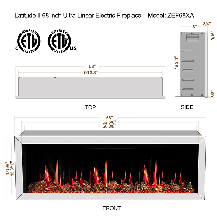 Firebox Dimension: W68 x H17 5/8" x D8"
