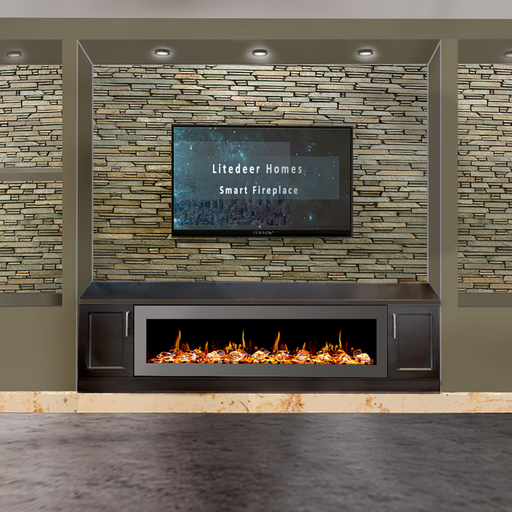 Litedeer HomesDescription Litedeer Homes 58 inch latitude smart control electric fireplace with wifi Fire crackling sounds Reflective Amber Glass and Remote Cont...